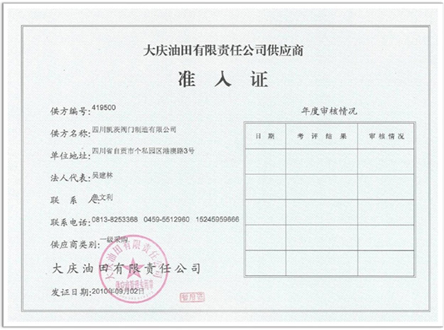 Pressure test certificat